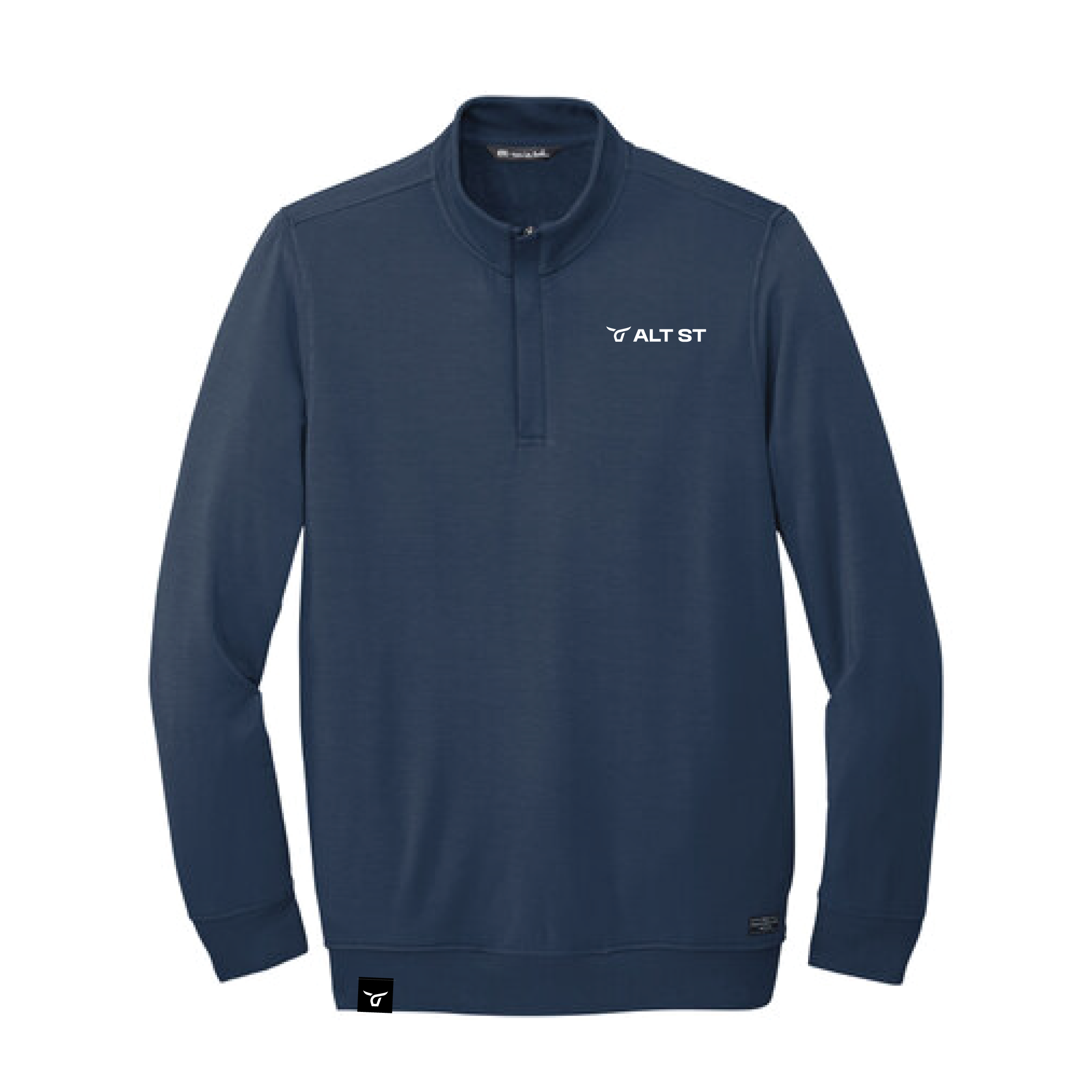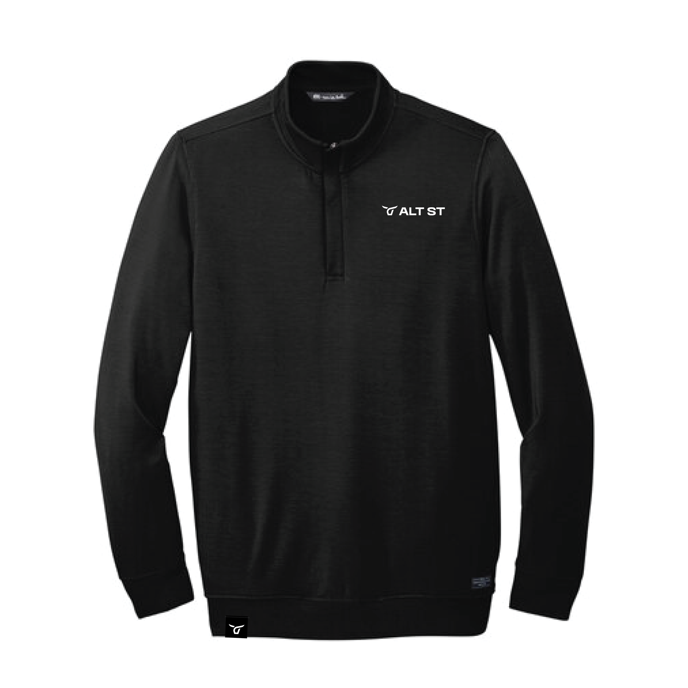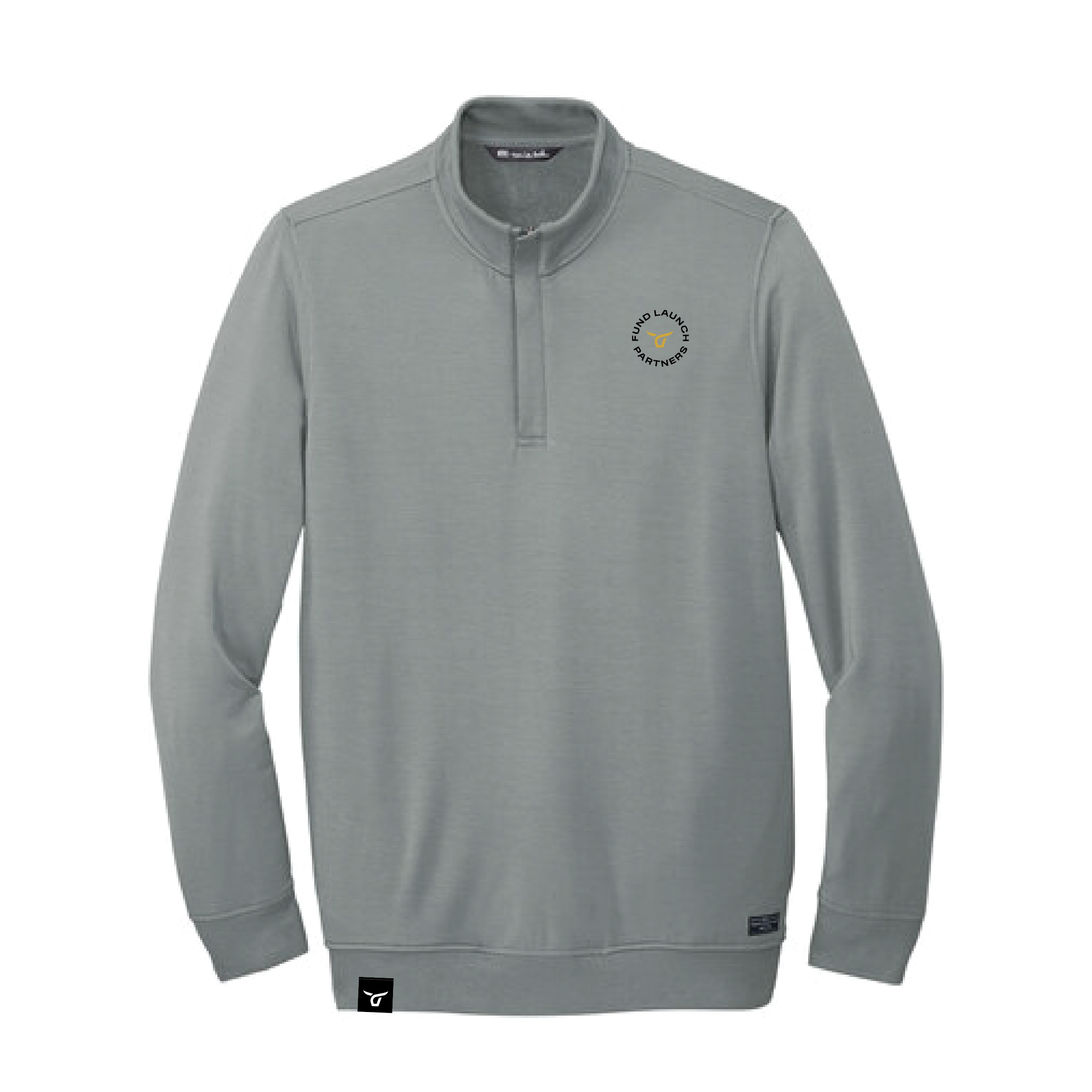 • TravisMathew patch label at left hem